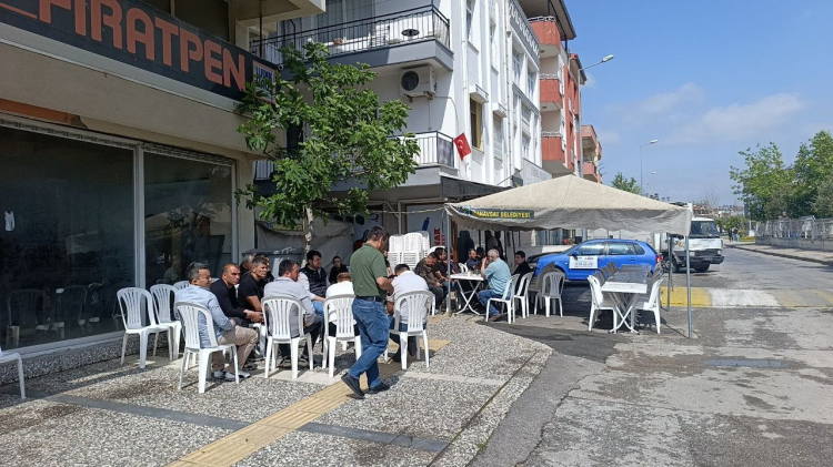 Aşağı Pazarcı Mahallesi Pazarcılar Odası yanında kurulan taziye çadırı Kocaakça'nın akraba ve arkadaşlarının akınına uğruyor.