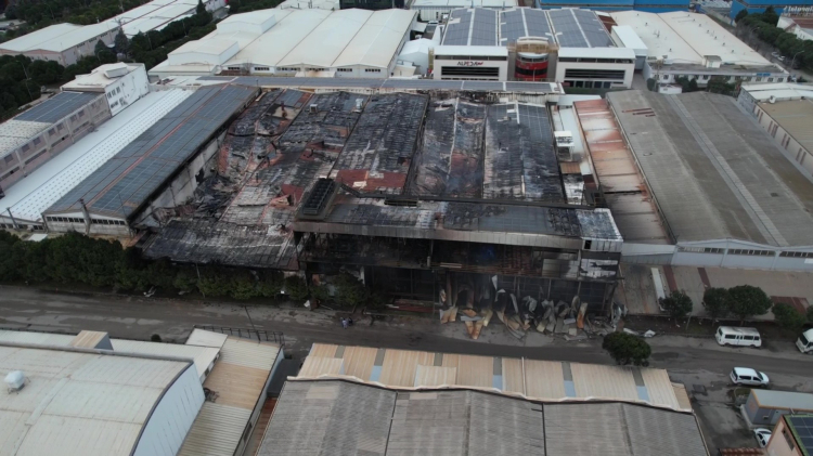 Dron ile kaydedilen görüntülerde, otomotiv sektörüne yönelik metal yüzey işlem proseslerinin yürütüldüğü fabrikanın tamamen kullanılamaz hale geldiği görüldü. Yangında fabrikanın duvarlarının büyük bölümünün yıkıldığı, yapının siyah is ve duman izleriyle kaplandığı dikkat çekti.