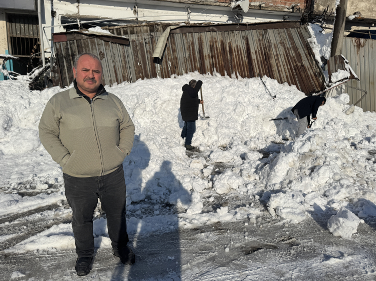 Çayevi işletmecisi Ramazan Hamza (55), temizledikleri çatının aralıksız devam eden kar yağışı nedeniyle yeniden karla dolduğunu belirtti.