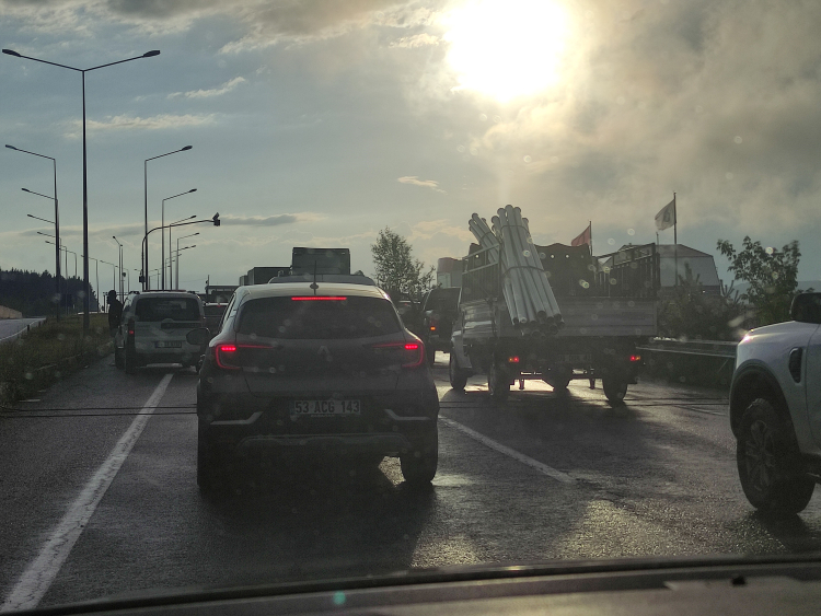 Sağanakla birlikte kayganlaşan yolda bir tırın kayması sonucu meydana gelen kaza nedeniyle yol kapanırken, yaklaşık 4 kilometrelik araç kuyruğu oluştu.