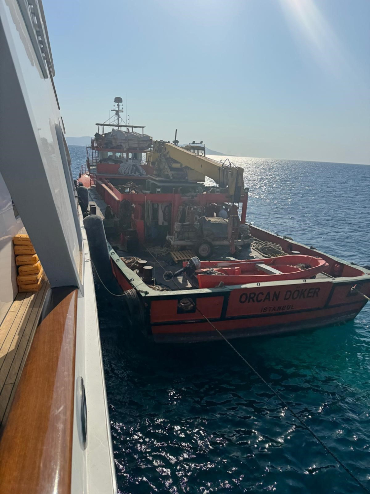 Muğla'nın Bodrum ilçesinde kayalıklara çarpan 39 metre boyundaki motoryatı kurtarma çalışmaları sürüyor.