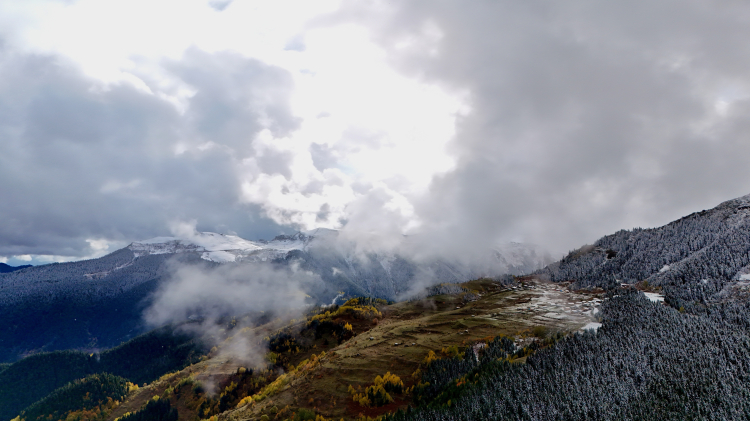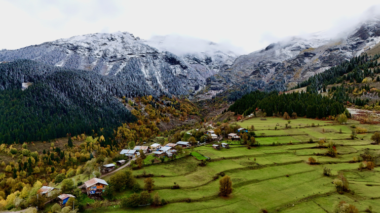 Kocaeli’nde yaşayan Arif Temiz, köyü olan Yağlı köyüne gelerek, sonbahar manzaralarını drone ile havadan görüntülerken, kar yağışıyla birlikte sonbaharın muhteşem görüntüleri yağlı tablo resimleri aratmadı.