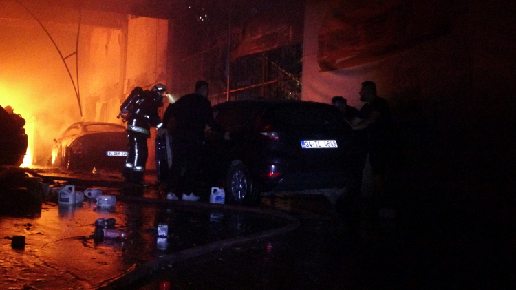İçerisinde çok sayıda araç, boya ve yanıcı maddelerinde bulunduğu işyerindeki yangının bitişiğindeki diğer işyerlerine sıçramaması ekipler yoğun çaba harcarken takviye ekipler sevk edildi. İtfaiye ekipleri yanıcı maddelerin bulunduğu işyerinde ki yangına köpükle hem içeriden hem de dışarıdan merdiven yardımıyla müdahale etti. Alevlerin sardığı işlerinin çatısı çökerken, yangın bitişikteki bir işyerine de sıçradı. İtfaiye ekipleri yangının büyümemesi için dört bir yandan cansiparane mücadele etti.
