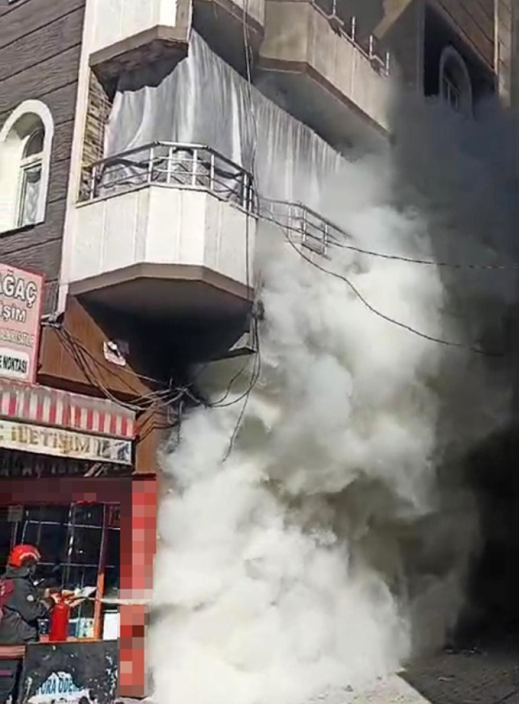 Mahalleyi elektriksiz bırakan pano yangını, itfaiye ekiplerince kontrol altına alındı. Mahallede yaşanan korku dolu anlar cep telefonu kamerasına yansıdı.