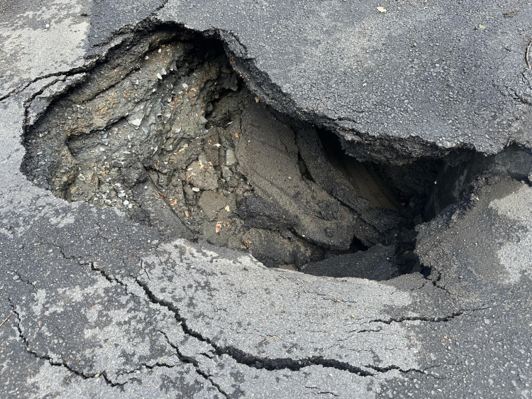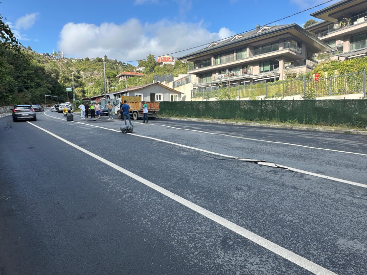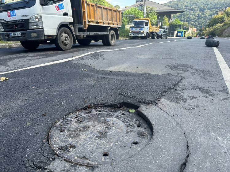 Sarıyer'de yağışlardan dolayı yolda çökme yaşandı.