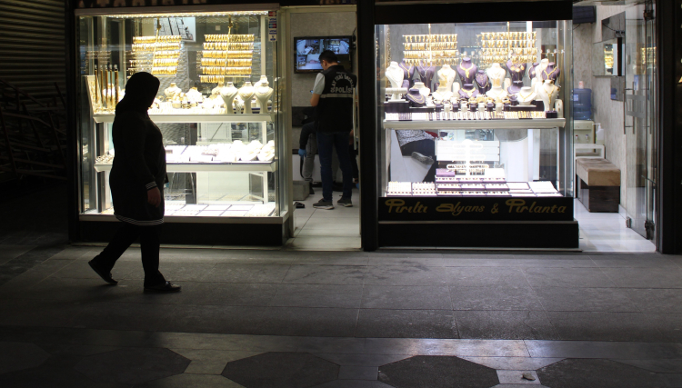 Edinilen bilgiye göre, Cumhuriyet Meydanı'nda bulunan Kazancılar Çarşısı'nda bir kuyumcuya giren yaşlı kadın, sarraf altınları gösterdiği sırada taşla kafasına vurdu. Sarrafla aralarında bir süre boğuşma yaşanan kadın, daha sonra biber gazı sıktı. Sesleri duyan komşu esnaflar, kuyumcuya gelerek yaşlı kadını etkisiz hale getirdi. Yaralanan sarraf çağırılan ambulansla hastaneye kaldırılırken, olay yerine gelen polis ekipleri kadını gözaltına aldı. Olay yeri inceleme ekipleri de kuyumcuda inceleme yaptı.
