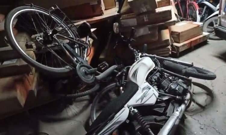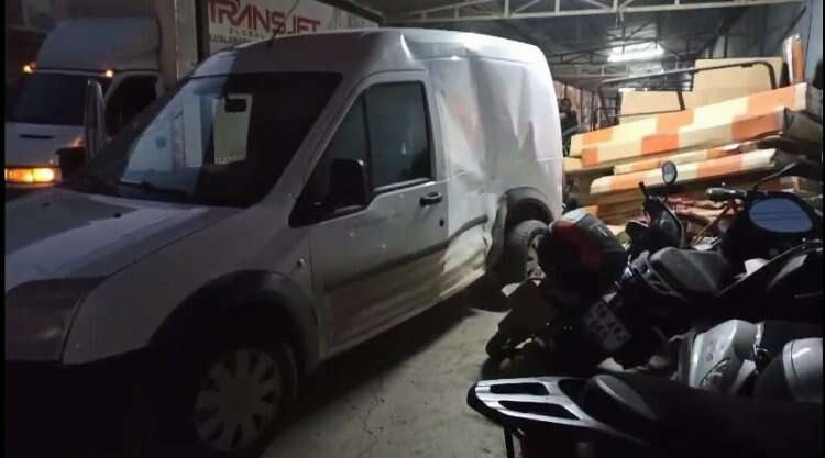 Çarpışmanın şiddetiyle kontrolden çıkan hafif ticari araç, yol üzerinde bulunan bir iş yerinin girişindeki 3 motosiklete, 2 bisiklete ve ardından mobilya ürünlerine çarparak durabildi.