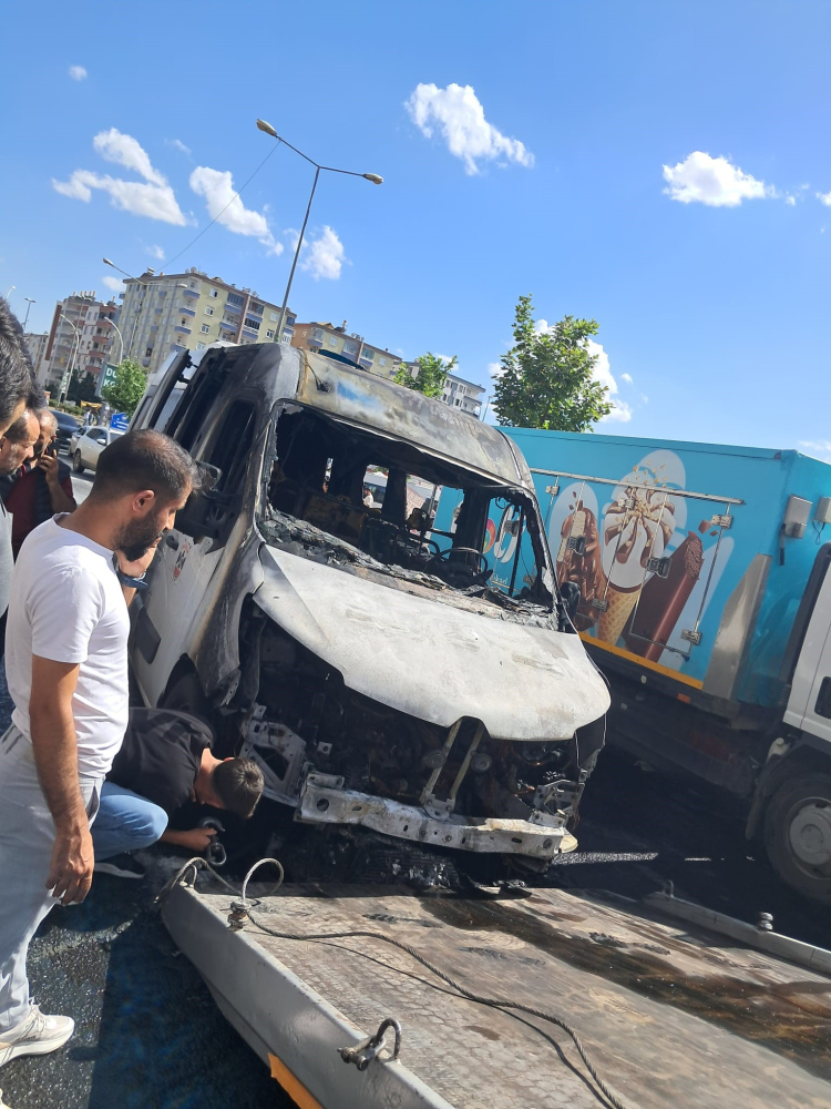 Diyarbakır'ın Kayapınar ilçesinde şehir içi minibüs, alevler içinde kalarak kullanılamaz hale geldi.