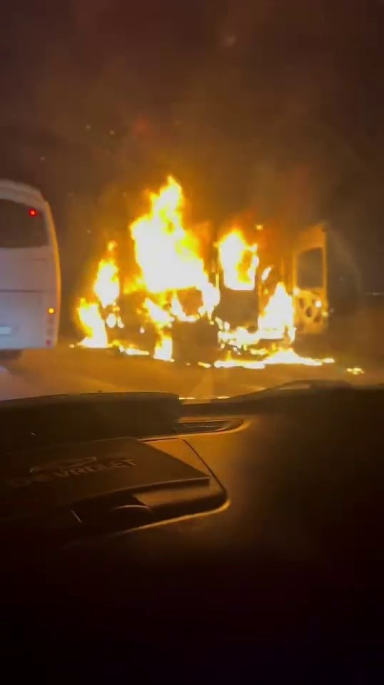 Olay yerinde gelen ekipler, yangını kontrol altına alarak söndürdü. Herhangi bir can kaybı veya yaralananın olmadığı yangında araç hurdaya döndü. Öte yandan, servis midibüsünün alevlere teslim olduğu anlar cep telefonu kamerası ile saniye saniye kaydedildi.