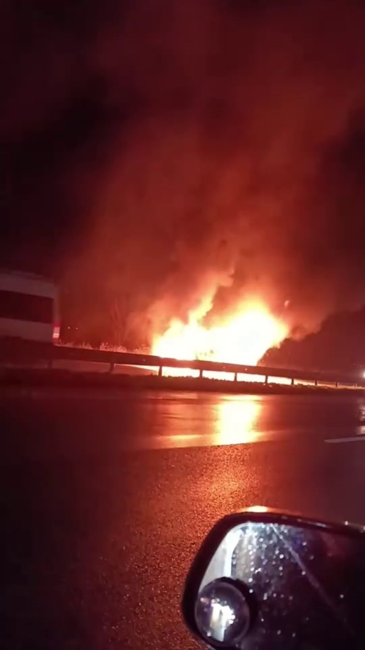 Sakarya'nın Hendek ilçesi D-100 kara yolunda işçileri taşıyan servis aracı alev alev yandı.