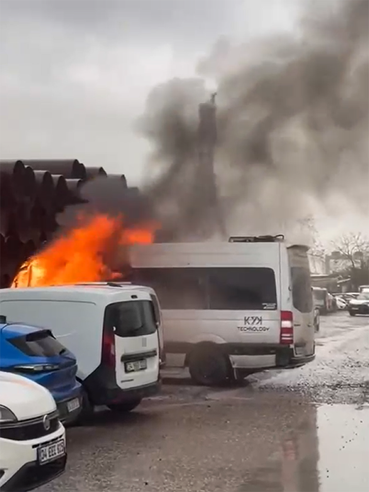Yalova'nın Altınova ilçesinde faaliyet gösteren bir tersanenin otoparkında bulunan servis minibüsünde çıkan yangın itfaiye ekipleri tarafından söndürüldü.