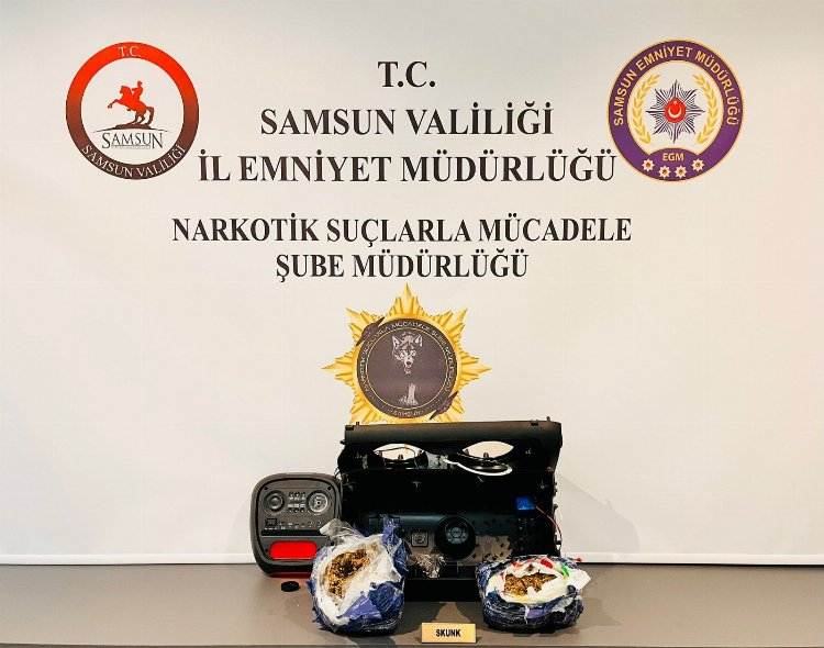 Samsun'da narkotik polisinin takibi sonucu, kargo ile gönderilen ses sisteminin içine zulalanmış 1 kilo 100 gram skunk ele geçirildi.