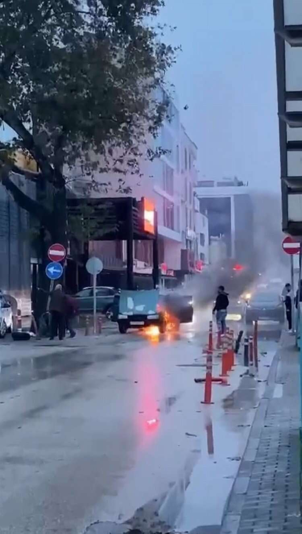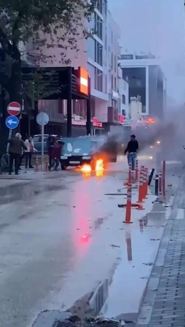 Otomobil, bir süre sonra alev topuna döndü. O anlar amatör kameralara yansıdı.