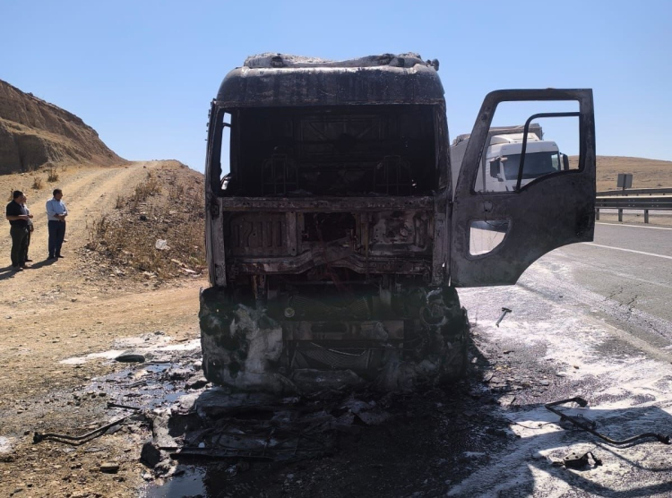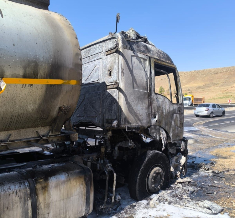 Aracının ön tarafından alevlerin yükseldiğini gören kamyon sürücüsü, aracı yol kenarına çekerek durumu itfaiyeye bildirdi. İhbar üzerine bölgeye sevk edilen itfaiye ekipleri tarafından söndürülen yangından sonra kamyondan geriye demir yığını kaldı. İtfaiye ekipleri yangının elektrik aksamından çıktığını tespit ederken, tankerin boş olması büyük bir faciayı önledi.