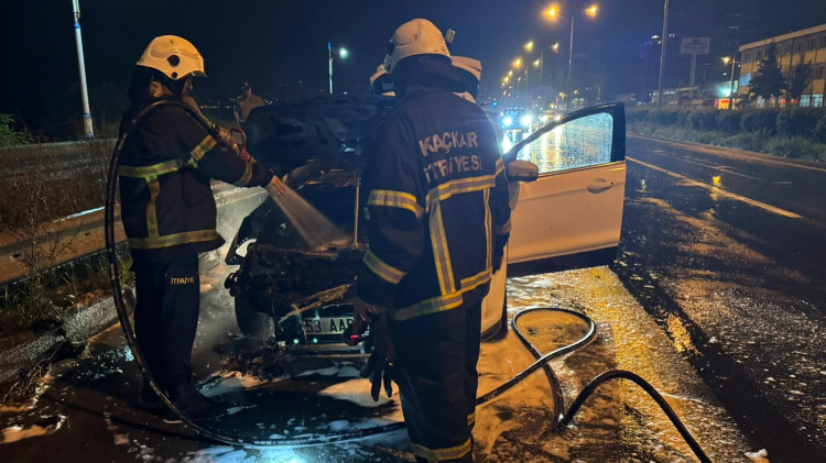 Olay Rize’nin Pazar ilçesine bağlı Kirazlık Mahallesi Karadeniz Sahil Yolu’nda dün gece saatlerinde meydana geldi. Edinilen belgeye göre Artvin istikametinden Rize istikametine gitmekte olan Kemal Yılmaztürk 53 AAD 541 plakalı aracıyla seyir halindeyken ilk önce araçtan yanık kokusu geldiğini, sonrasında ise aracın arıza lambasının yandığını fark aracını sağa çekti. Araçtan inen Yılmaztürk aracından önce duman sonrasında ise dumanların yerini alevler bıraktığını görerek araçtaki yangın tüpü ile müdahale etmek istedi. O esnada yoldan geçen diğer şoförler ise durumu 112 Acil Çağrı Merkezi’ne bildirerek yardım istedi. Olay yerine Kaçkar Bölge İtfaiye ekipleri sevk edildi. Kısa sürede yanan araca ulaşan ekipler yangını kontrol altına alarak söndürdü.