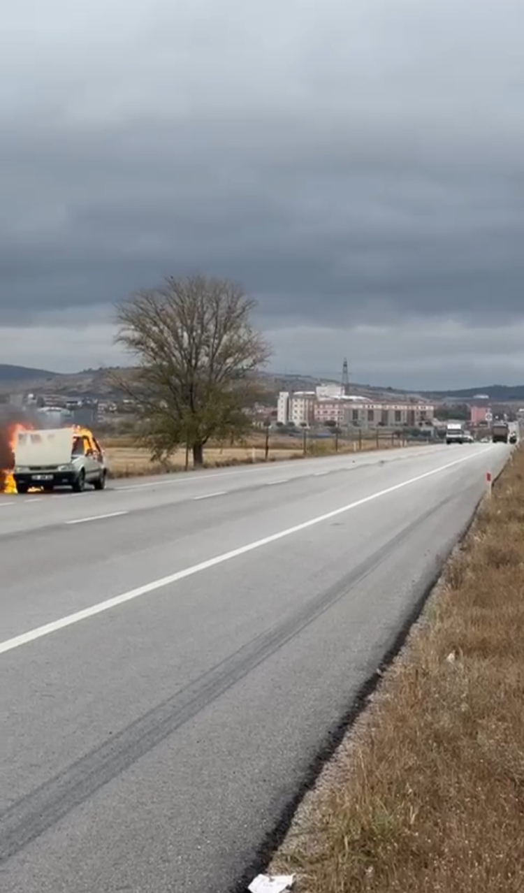Seyir halindeki 20 AGM 243 plakalı otomobil henüz bilinmeyen bir nedenle alev aldı. Sürücü, otomobili yol kenarına çekerek itfaiye ekiplerine haber verdi.