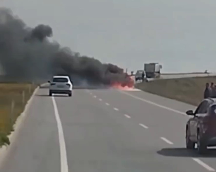 Olay, Edirne-Kırklareli yolu üzerinde meydana geldi. Edinilen bilgilere göre, seyir halindeki iş makinesinde henüz belirlenemeyen bir nedenle yangın çıktı. Kısa sürede büyüyen alevler aracı tamamen sardı. İhbar üzerine olay yerine itfaiye ve jandarma ekipleri sevk edildi.