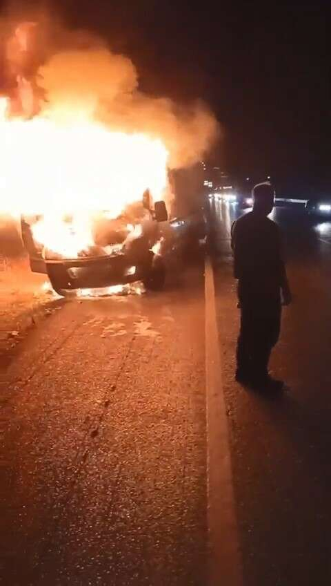 Bursa’da seyir halindeki kamyonet motor kısmından çıkan arıza sonrası alev topuna döndü.