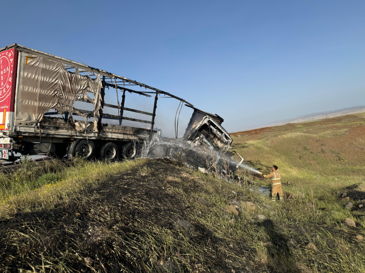 İtfaiye ekipleri tarafından söndürülen yangında tır kullanılamaz hale geldi.