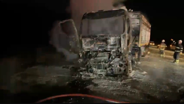 İhbar üzerine olay yerine itfaiye ekipleri sevk edildi. Ekiplerin kontrol altına alarak söndürdüğü yangında can kaybı yaşanmazken, tır kullanılamaz hale geldi.