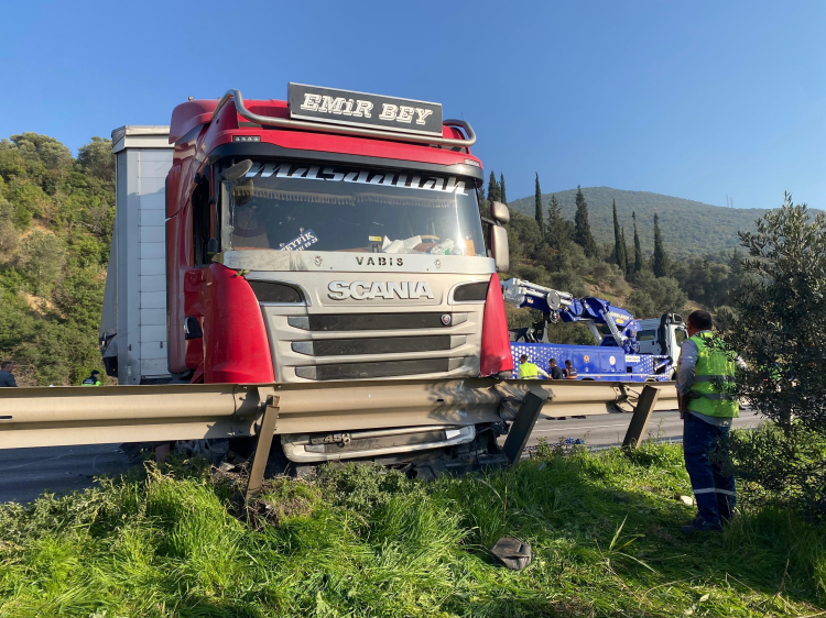 Seyir halindeki tır, orta bariyerleri aşarak karşı şeride geçti