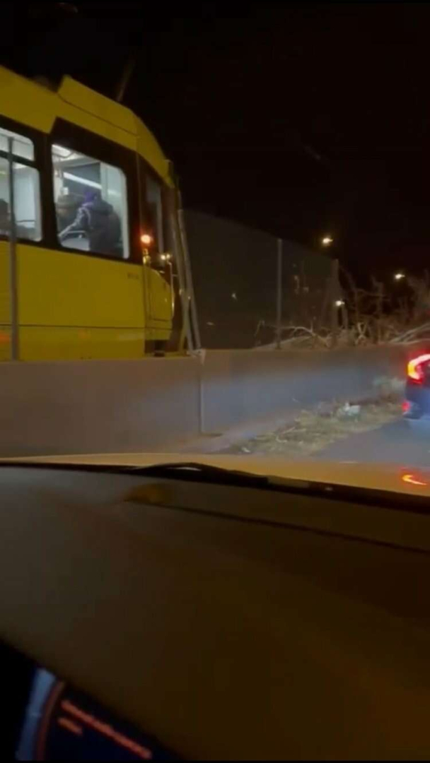 Bursa’da gece saatlerinde etkisini iyice artıran şiddetli lodos nedeniyle metro raylarına ağaç devrildi.
