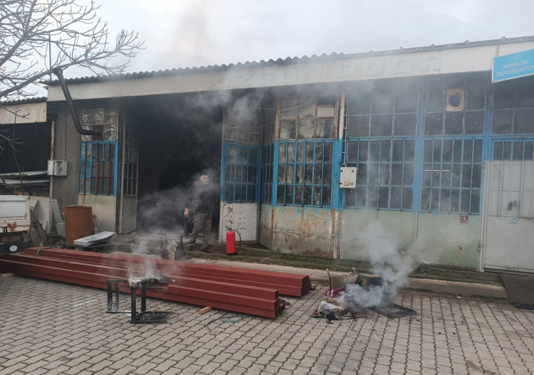 Olay, bir demir doğrama işletmesinde, sobaya tiner dökülmesi sırasında yaşandı.