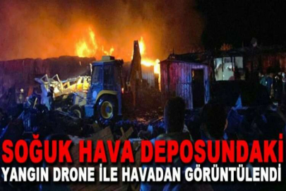 Soğuk hava deposundaki yangın drone ile havadan görüntülendi