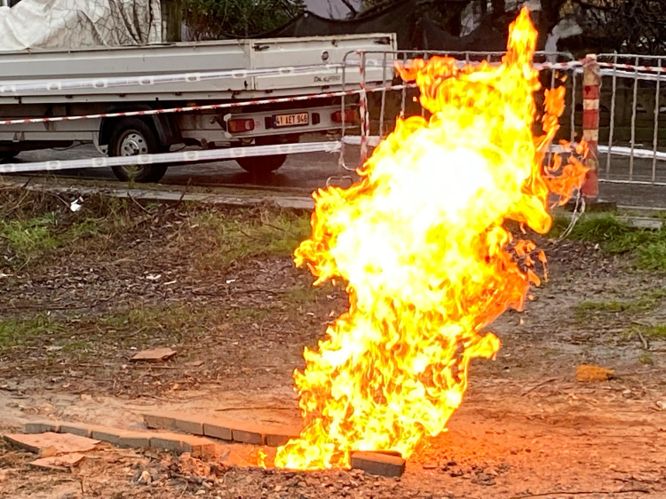 İlginç olay, dün saat 14.00 sıralarında Dumlupınar Mahallesi Bedir Sokak'ta metro inşaatının sondaj çalışması sırasında meydana geldi. Yaklaşık 47 metre derinlikte sondaj çalışması yapıldığı sırada yüzeye çıkan metan gazı alevlendi. İşçilerin 112 Acil Çağrı Merkezi'ne ihbarda bulunması üzerine bölgeye polis, sağlık, itfaiye ve AFAD ekipleri sevk edildi. Şerit çeken ve demir bariyerle yangının çevresine girişleri kapatan ekipler, bölgede güvenlik önlemi aldı.