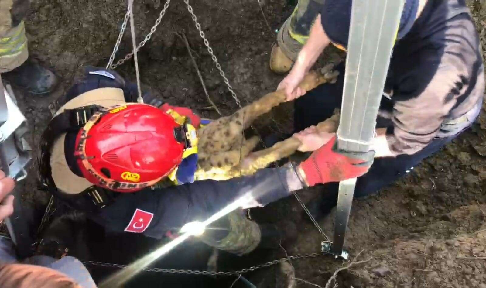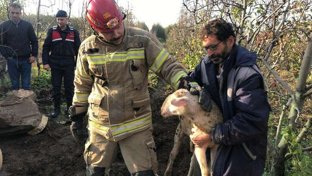 Çakar, durumu itfaiyeye bildirdi. Olay yerine gelen itfaiye ekipleri, 3 saat süren yoğun çalışma sonucu küçükbaş hayvanı canlı olarak kurtardı.