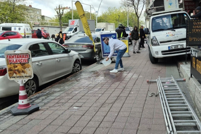 Sultangazi'de kamyonet üzerinde tabela montajı yaparken şiddetli rüzgar nedeniyle dengesini kaybederek düşen işçi hayatını kaybetti.