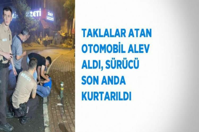 TAKLALAR ATAN OTOMOBİL ALEV ALDI, SÜRÜCÜ SON ANDA KURTARILDI