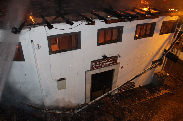Edinilen bilgiye göre, tarihi hamamda henüz belirlenemeyen bir sebeple yangın çıktı. Alevler, kısa sürede tüm binayı sardı. Yangını gören vatandaşlar durumu 112 Acil Çağrı Merkezine bildirdi. İhbar üzerine olay yerine itfaiye ekipleri sevk edildi.