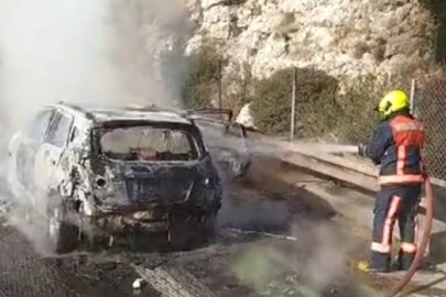 Mersin'in Tarsus ilçesinde seyir halindeki otomobil yandı.