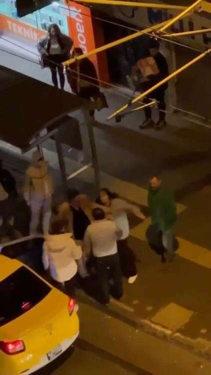Çevredekilerin müdahalesiyle sakinleştirilmeye çalışan kadın güçlükle ikna edilirken, sakinliği koruyan adam ise kameralara anbean yansıdı.