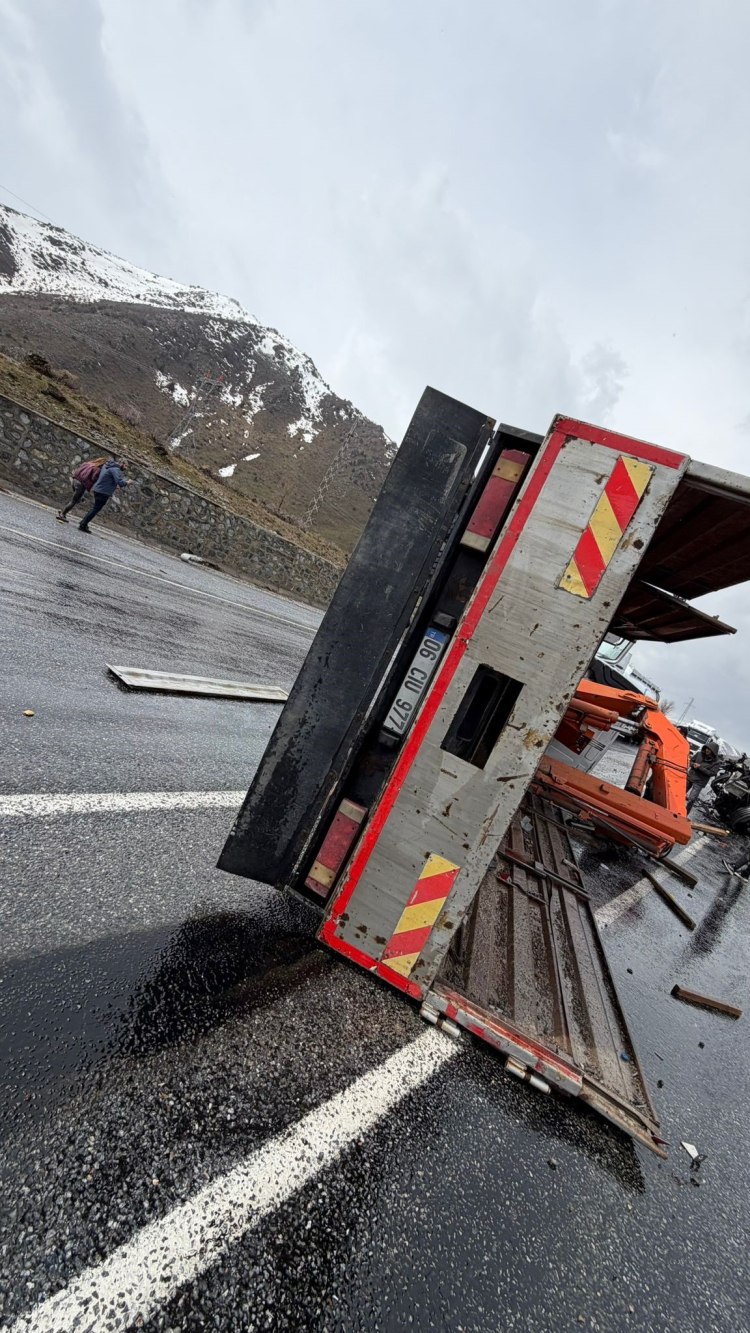 Bitlis-Van karayolunda Karayollarına ait iş makinesi ile sebze yüklü tırın çarpıştığı kazada 1'i ağır olmak üzere 3 kişi yaralandı.
