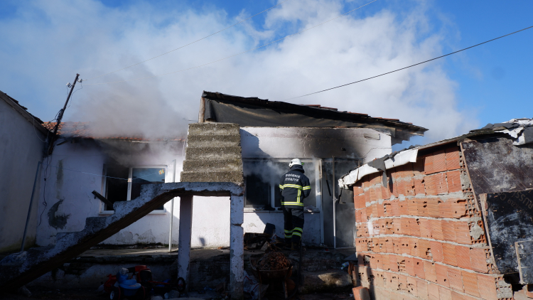 Edirne'nin Yıldırım Hacı Sarraf Mahallesi Pembegül Sokak’ta bulunan tek katlı müstakil bir evde henüz belirlenemeyen bir nedenle yangın çıktı.