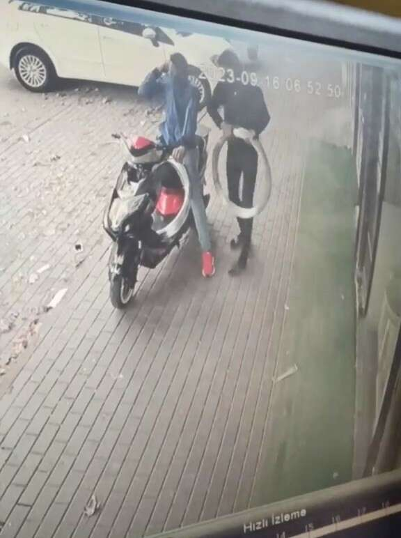 Bursa'nın İnegöl ilçesinde faaliyet gösteren nalburun önünden tel çalan şüpheliler, güvenlik kamerasına yakalandı.