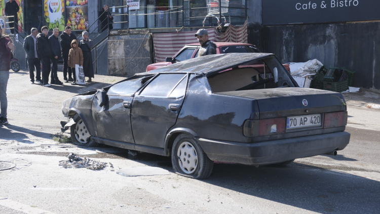 Kaza, Tabduk Emre Mahallesi Prof. Dr. Halil Cin Caddesi'nde meydana geldi. Edinilen bilgiye göre, A.H.Y. (23) kullandığı 70 AP 420 plakalı Tofaş marka otomobil ile seyir halindeyken, cep telefonuyla annesini aramak istedi. O sırada kontrolden çıkan otomobil, refüje çarpıp ağaçları devirdikten sonra takla attı. Sürücü kazayı yara almadan atlatırken, otomobil adeta hurdaya döndü. İhbar üzerine olay yerine sağlık ve polis ekipleri sevk edildi.