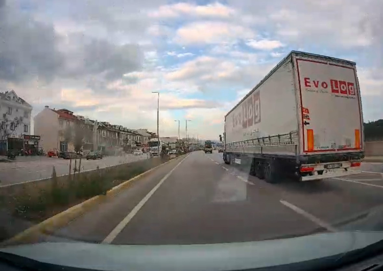Balıkesir'in Bandırma ilçesi Gönen yolunda, EVO Log firmasına ait 34 plakalı tır hatalı sollama ve aşırı hız yaparak trafikte vatandaşlara zor anlar yaşattı.
