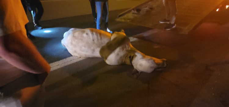 Uzun kuyruğa neden olan angus, ekipler tarafından iğneyle vurularak yakalandı.