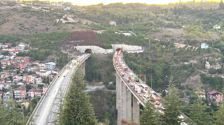 TEM Otoyolu'nun Kocaeli geçişinde 3 tırın karıştığı zincirleme trafik kazası sebebiyle İstanbul istikametinde 11 kilometrelik araç kuyruğu oluştu.
