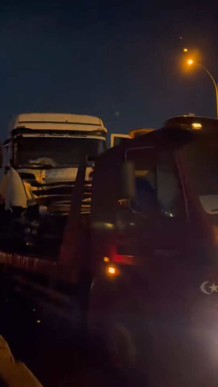 Yolda 11 kilometrelik araç kuyruğu oluştu. Karayolları ekipleri, kazaya karışan araçların yoldan kaldırılması için çalışma başlattı.