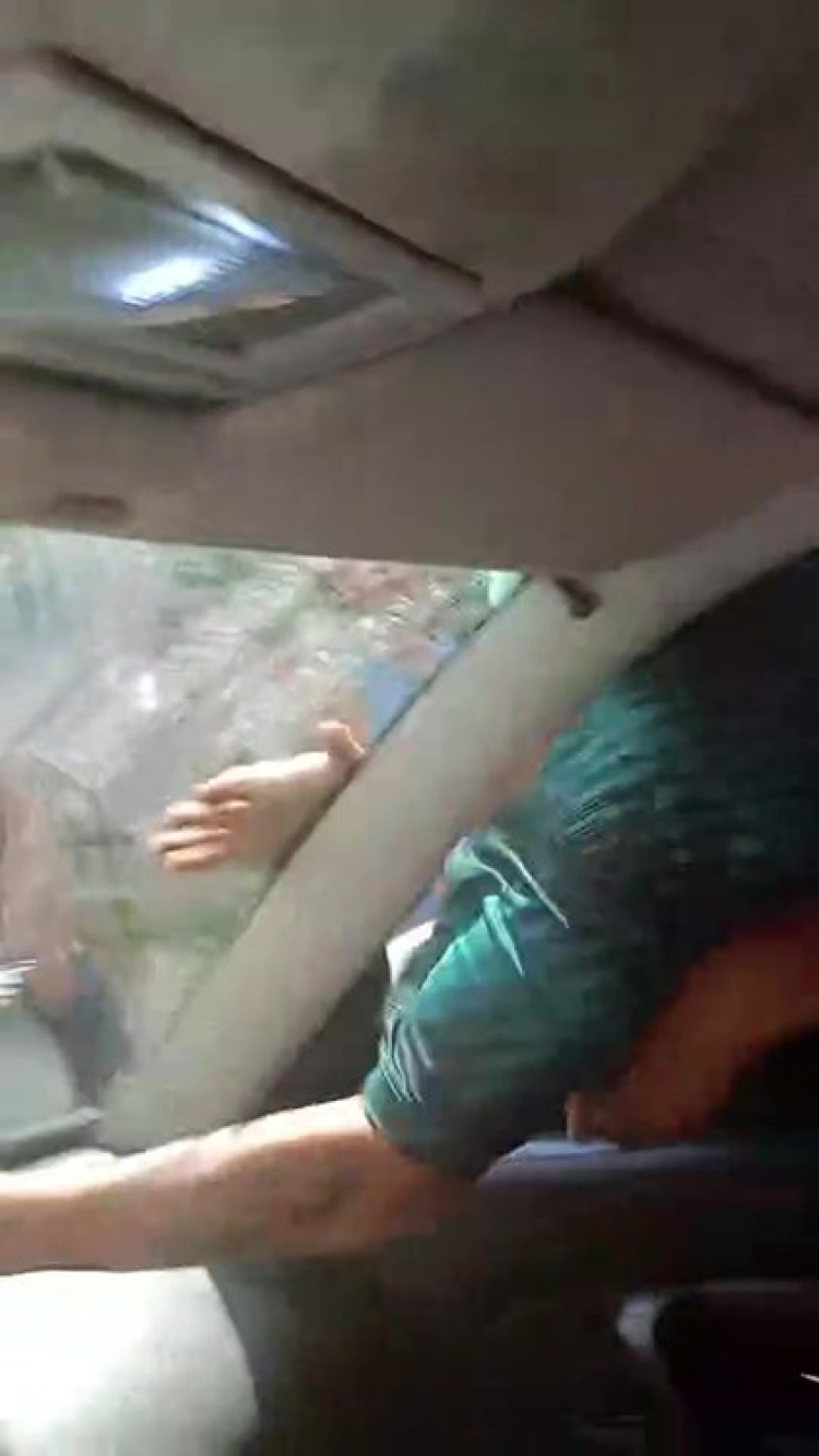 Olay anında araçtan inmeyen sürücü, yaşananları cep telefonu kamerasıyla saniye saniye kaydetti.
