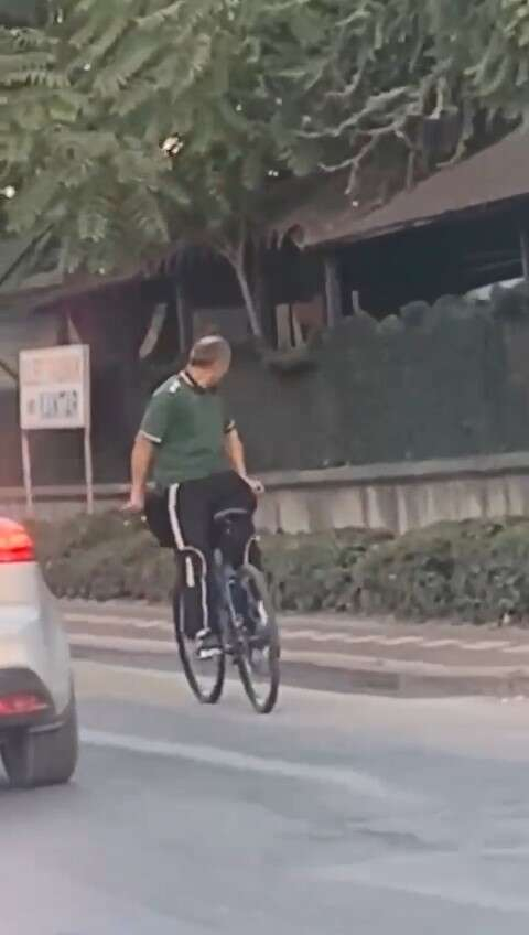 Bursa’da bir vatandaş, trafiğin aktığı caddede bisikletine ters binerek ilerledi.