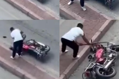 Sürücüyü yakalayamayan şahıs, caddede terk ettiği motosiklete zarar verdikten sonra olay yerinden uzaklaştı. O anlar ise çevredeki vatandaşlar tarafından cep telefonu kamerası ile görüntülendi.