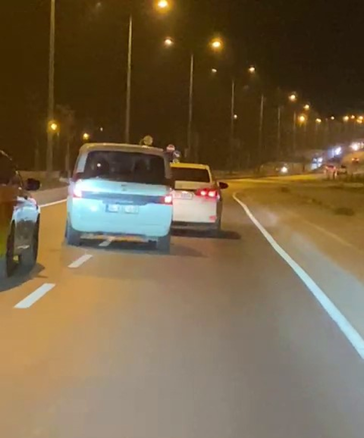 O anlar, aynı güzergahta seyir halinde olan bir başka araç sürücüsünün cep telefonu kamerası tarafından saniye saniye kaydedildi. Görüntülerde hafif ticari aracın şerit değiştirerek tehlikeli bir şekilde ilerlediği ve diğer araçların süratle fren yaptığı anlar yer aldı.