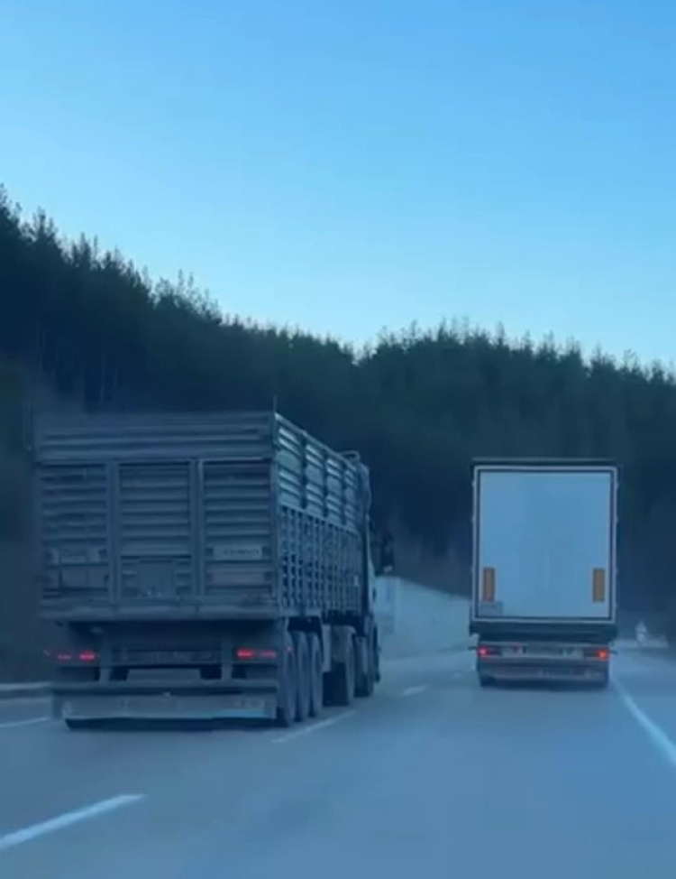 Adana'nın Kozan ilçesinde bir kamyon sürücüsünün sollama manevraları tepki çekti.