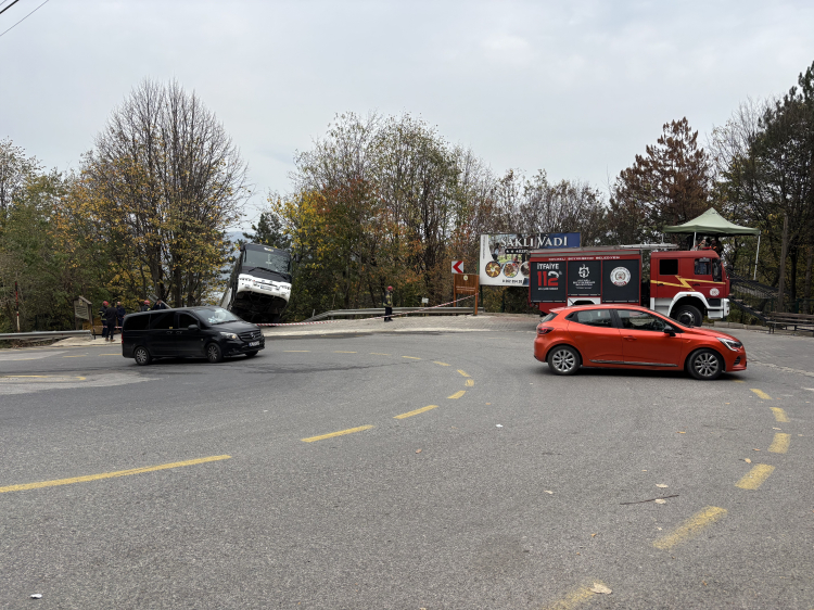 Otobüsün arka tekerlekleri toprak zemine değerken, ön kısmı ise havada kaldı. Kazada yaralanan olmazken, ihbarla bölgeye jandarma ve itfaiye ekipleri yönlendirildi. Jandarma ekipleri otobüsün etrafını şeritle çevirerek güvenlik önlemi aldı. Otobüsün bulunduğu yerden çıkarılması için çalışma başlatıldı.