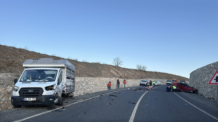 Uşak'ın Eşme ilçesinde otomobil ile kamyonetin çarpışması sonucu meydana gelen kazada 2 kişi hayatını kaybetti, 1 kişi ağır yaralandı.